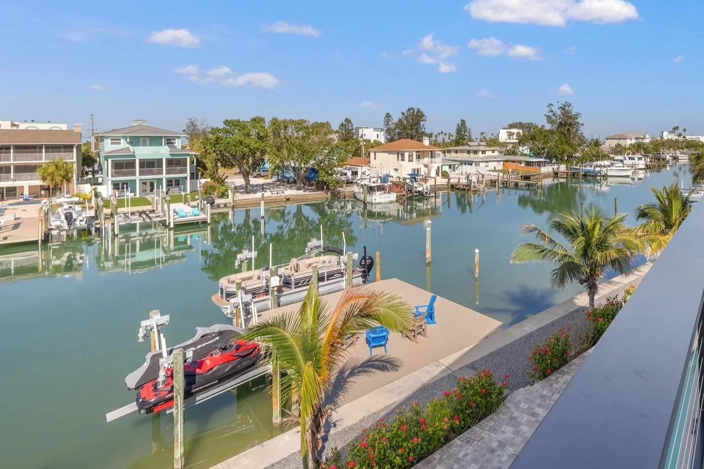 Anchored by 109 feet of brand-new seawall, Osprey Oasis offers three individually deeded boat slips—ideal for discerning boat owners and Freedom Boat Club members alike. The grandfathered-in dock, the largest on the canal, provides rare waterfront flexibility and can be customized into three separate docks to suit the owner's preferences.